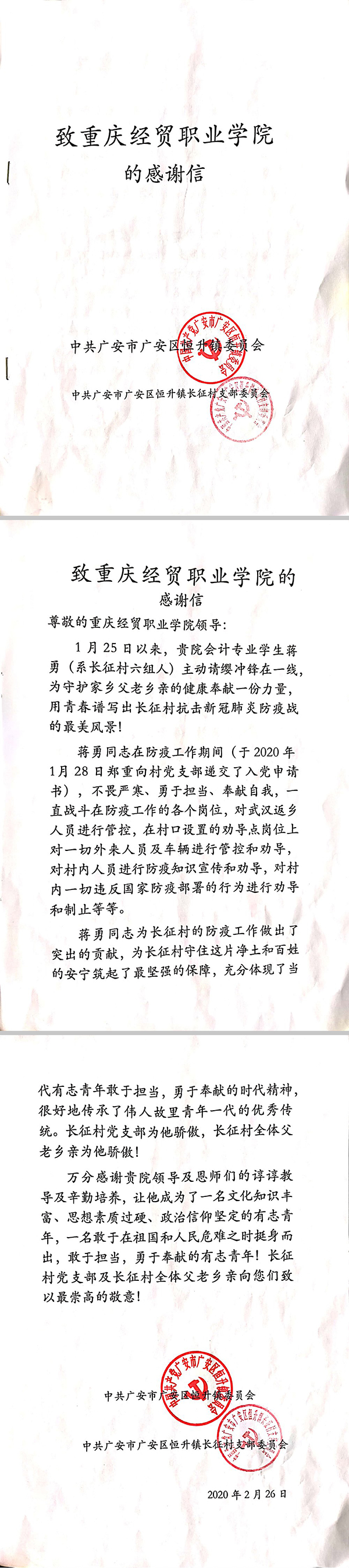 抗击疫情 我在行动丨来信转发—中共广安市广安区恒升镇委员会致英国beat365官方网站的感谢信
