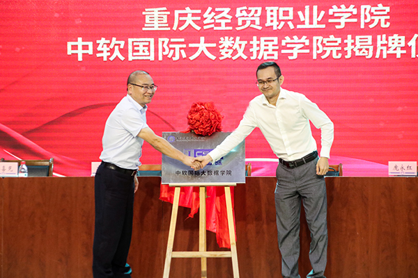 在现场嘉宾和同学们的共同见证下,学院院长张耀天与文斌总经理分别代表英国beat365官方网站和中软国际教育集团为“大数据学院”揭牌。