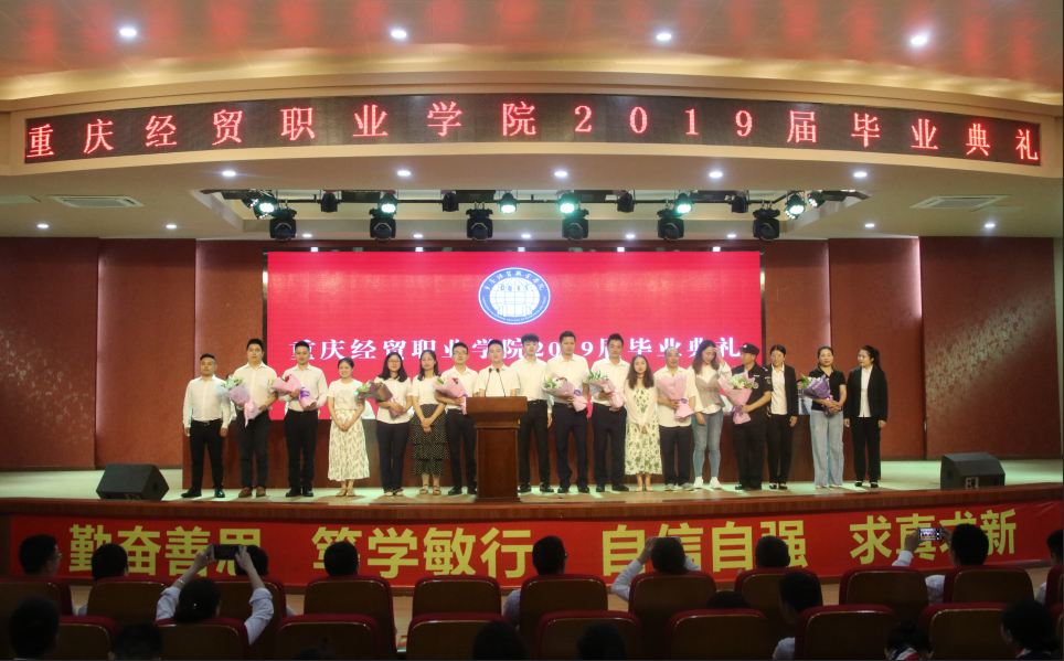 陈奇良副院长宣读《中共重庆市委教育工委重庆市教育委员会关于2019年普通高等优秀毕业研究生和优秀大学毕业生的通报》及《英国beat365官方网站关于表彰2019年优秀大学毕业生的决定》,学院领导向优秀毕业生代表颁发荣誉证书。