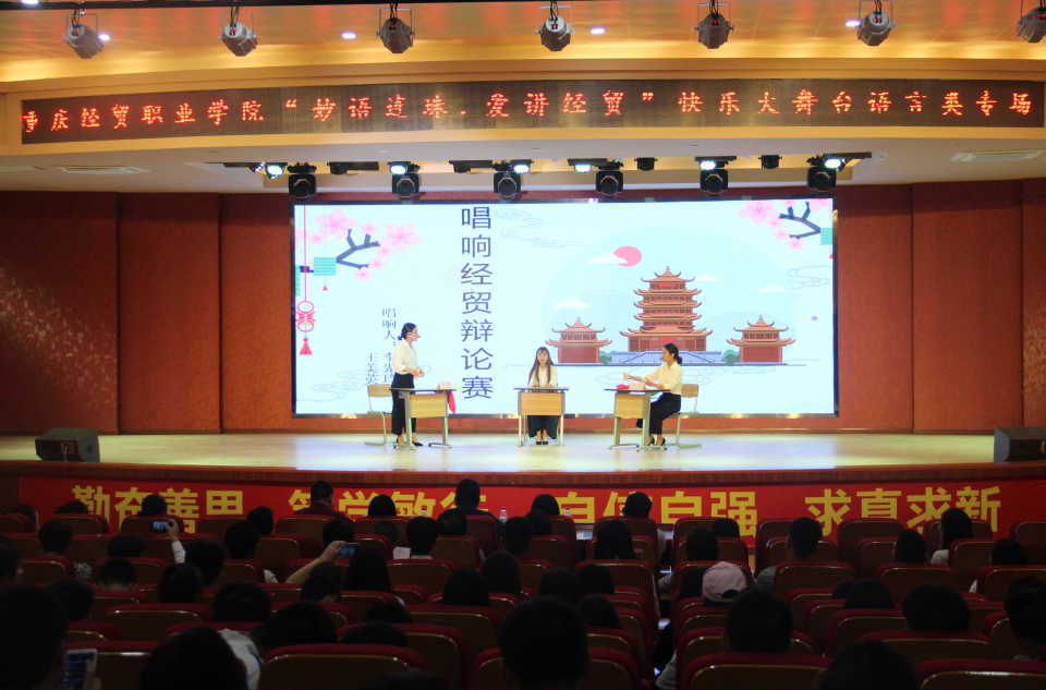 5月29日,以“妙语连珠,爱讲经贸”为主题的语言类专场活动在beat365学术报告厅举行。黔江电视台主持人导演宋昊轩、重庆国维外国语学校教学中心主任靳静、北京广慧金通有限公司驻黔代表蒋悦、学院院长助理杨诚、各部门领导、老师及600余名学生参加活动。