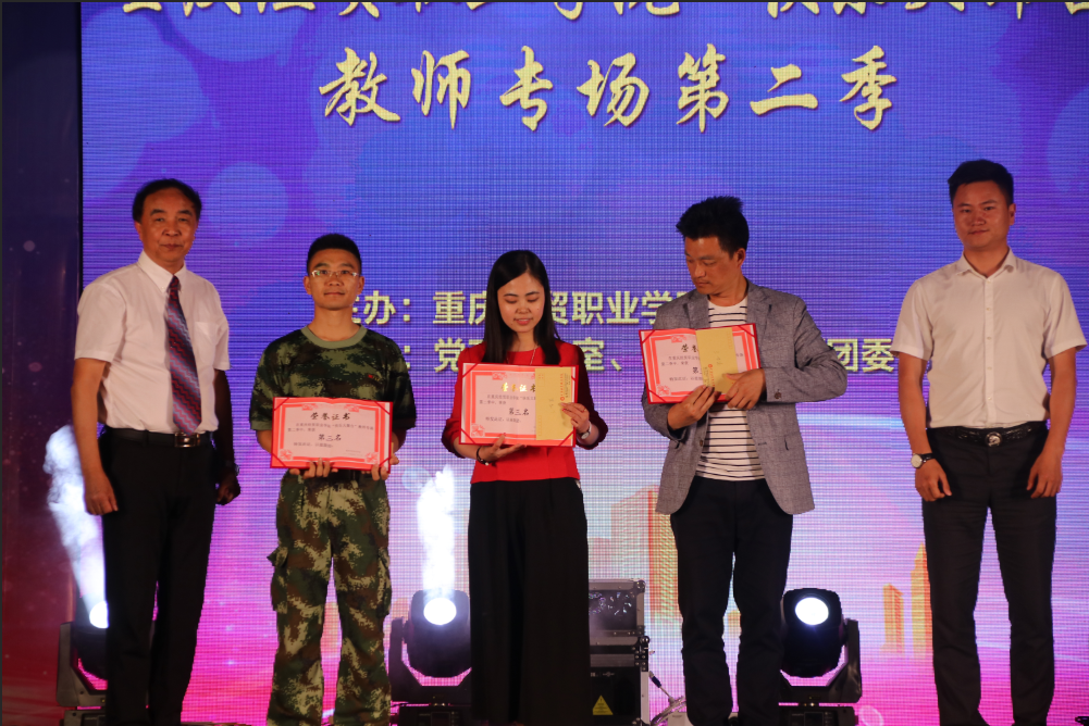 学院副院长谈建设、陈奇良为获得三等奖的节目颁奖