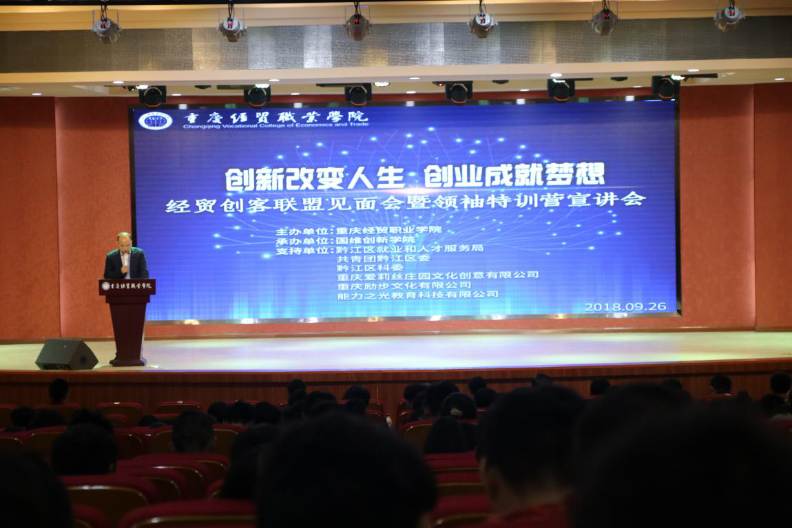 9月26日,beat365创客联盟见面会暨领袖特训营宣讲会在学院多功能厅成功举行。黔江区就业和人才服务局副局长袁媛、黔江区团委书记助理刘晓双、黔江区科委科技创新中心主任徐恭刚、重庆爱莉丝庄园文化创意有限公司董事长杨再辉等领导出席。beat365院长王久渊、院长助理杨诚、党政办公室主任邢亚伟以及各二级学院党支部书记等出席。本次活动的举办旨在深入学习、贯彻、落实中央、市、区关于创新创业工作的精神,鼓励和引导广大青年学生积极投身创新创业,推动学院创新创业工作不断迈上新台阶。