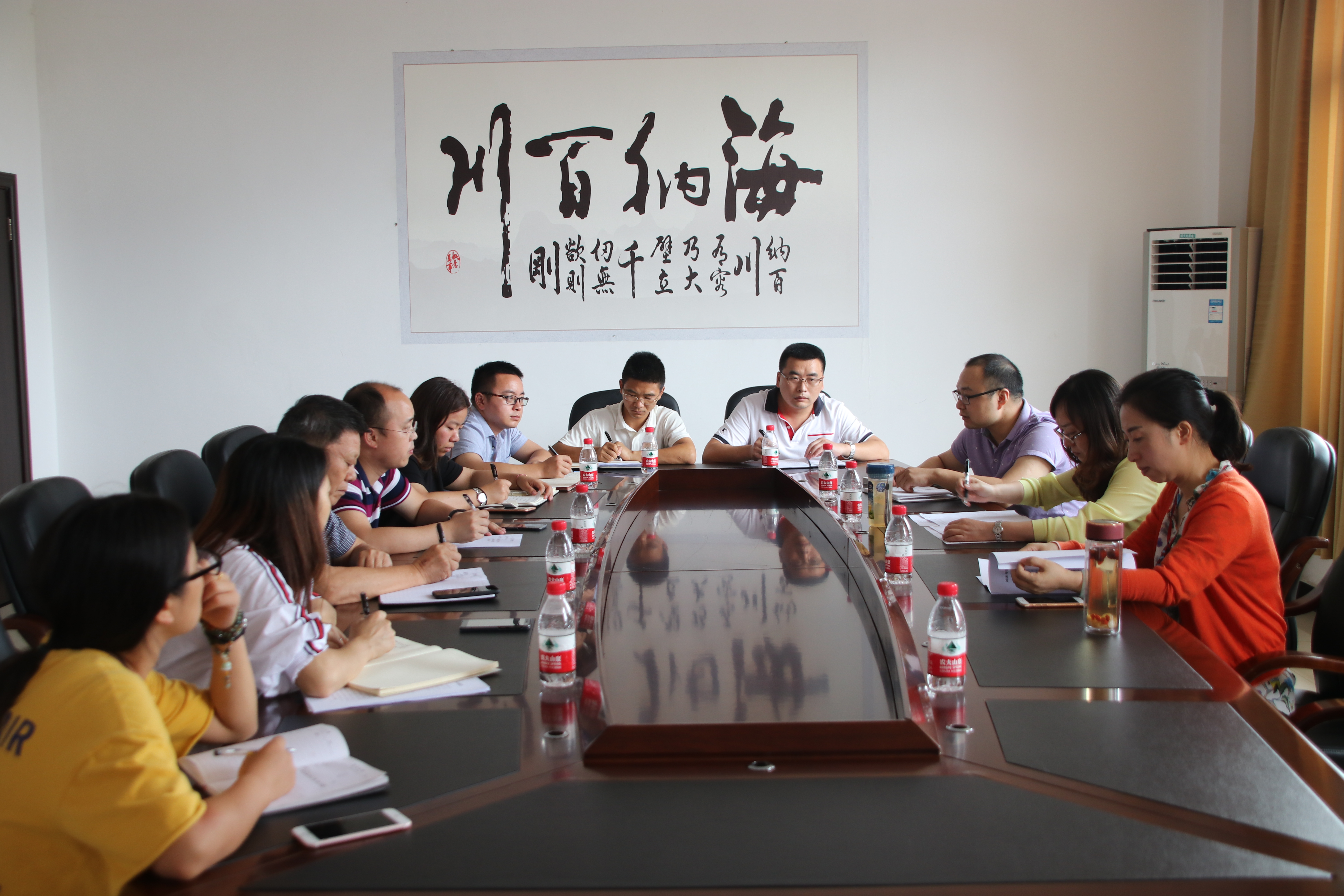 督查组首先在行政楼第二会议室召开了2018年第二季度基层党工作督查会。督查组成员,学院党委委员,党政办负责人,各党支部书记参加了会议。会上王久渊书记简要汇报了学院党建工作基本情况。