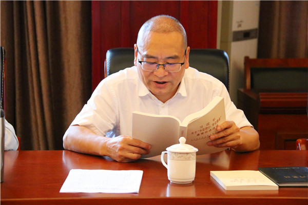 会上,张耀天院长带领大家学习了习近平总书记最新重要讲话文章:中华人民共和国成立70周年庆祝大会讲话、《习近平关于“不忘初心、牢记使命”重要论述选编》、《习近平关于“不忘初心、牢记使命”重要论述摘编》相关材料,并着重学习了《加强纪律建设,把守纪律讲规矩摆在更加重要的位置》、《走得再远都不能忘记来时的路》《广大干部特别是年轻干部要做到信念坚、政治强、本领高、作风硬》三篇文章。张院长表示,学院领导班子成员要认真学习贯彻中央对“不忘初心、牢记使命”主题教育的要求,首先做到学深悟透,保证思想认识到位,切实增强政治自觉、思想自觉和行动自觉,为达成主题教育总要求打下坚实的基础。学习是主题教育的第一步,必须把学习贯穿主题教育的始终,不断深化对主题教育重大意义的认识,深化对党的初心和使命的认识,深化对党面临的风险考验的认识。要把学习教育与调查研究、检视问题、整改落实统筹推进,真抓实干,攻坚克难。张院长强调,学院党员干部要把准政治方向,坚定政治信仰,坚持党的政治领导,提高政治能力,净化政治生态,才能够全面落实党中央要求,加强学校党的政治建设。