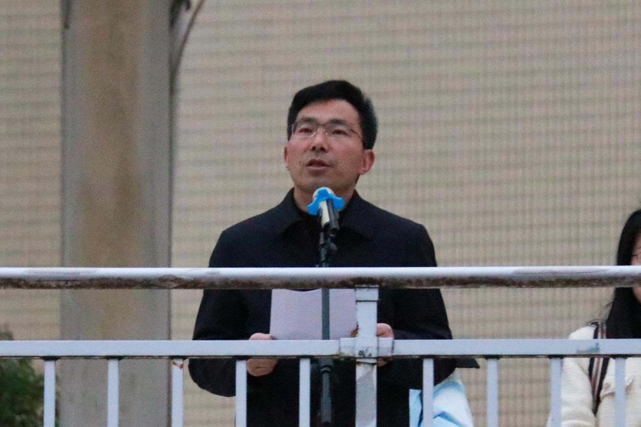 党委书记徐泽胜在升旗仪式上讲话,对全体同学提出了三点希望与要求:一是要做坚定理想、心有大爱的好青年;二是要做向新发力、向高攀登的经贸人;三是要做自强不息、奋斗进取的行动者。