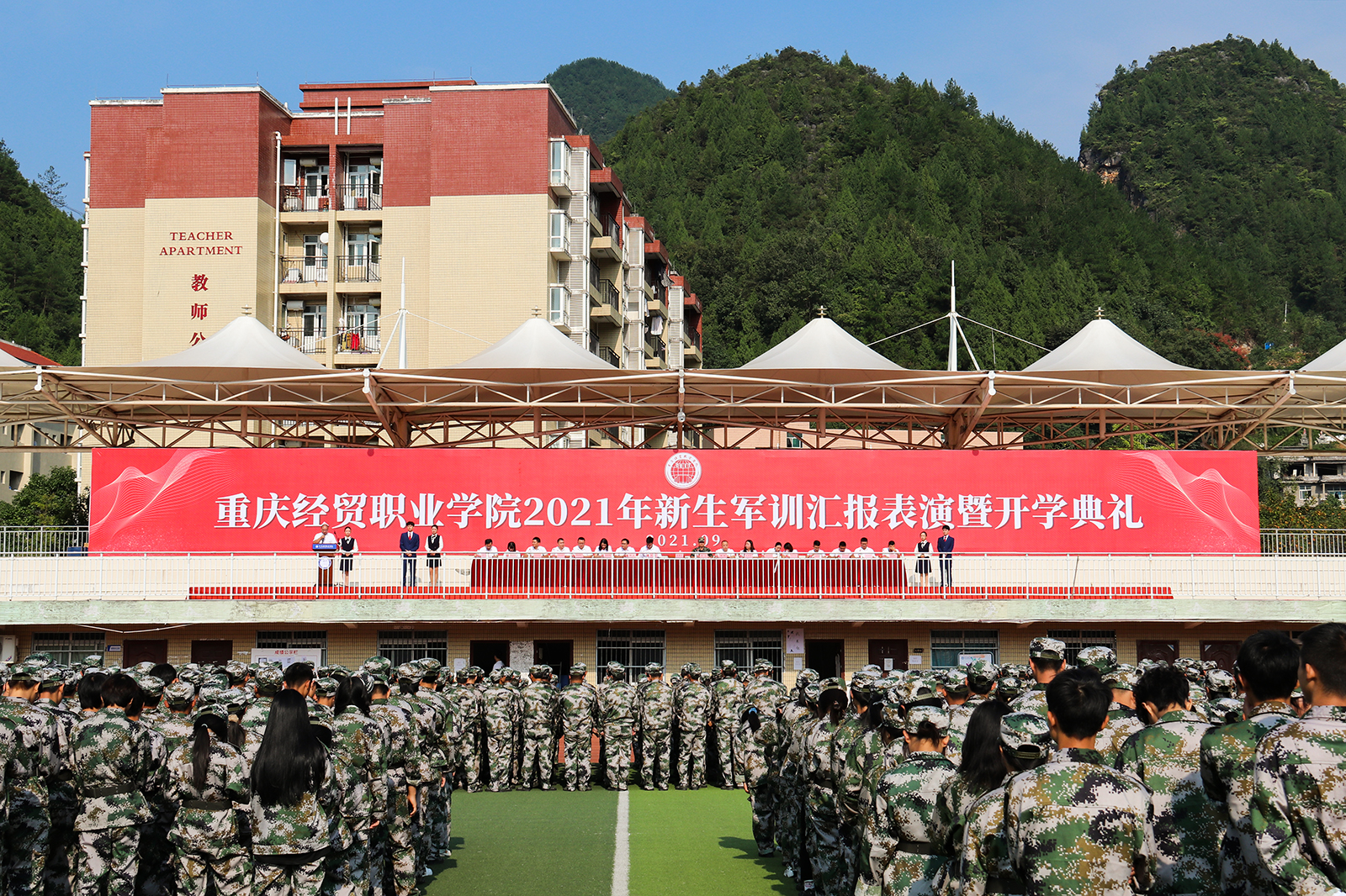 9月1日,beat3652021年新生军训动员大会在田径运动场举办。学院党委书记徐泽胜、武警重庆市总队执勤第五支队中校参谋长段庆、院长助理庞永红、姚樊樊出席本次大会,学院各部门负责人、全体承训教官及2021级全体新生参加了动员大会。